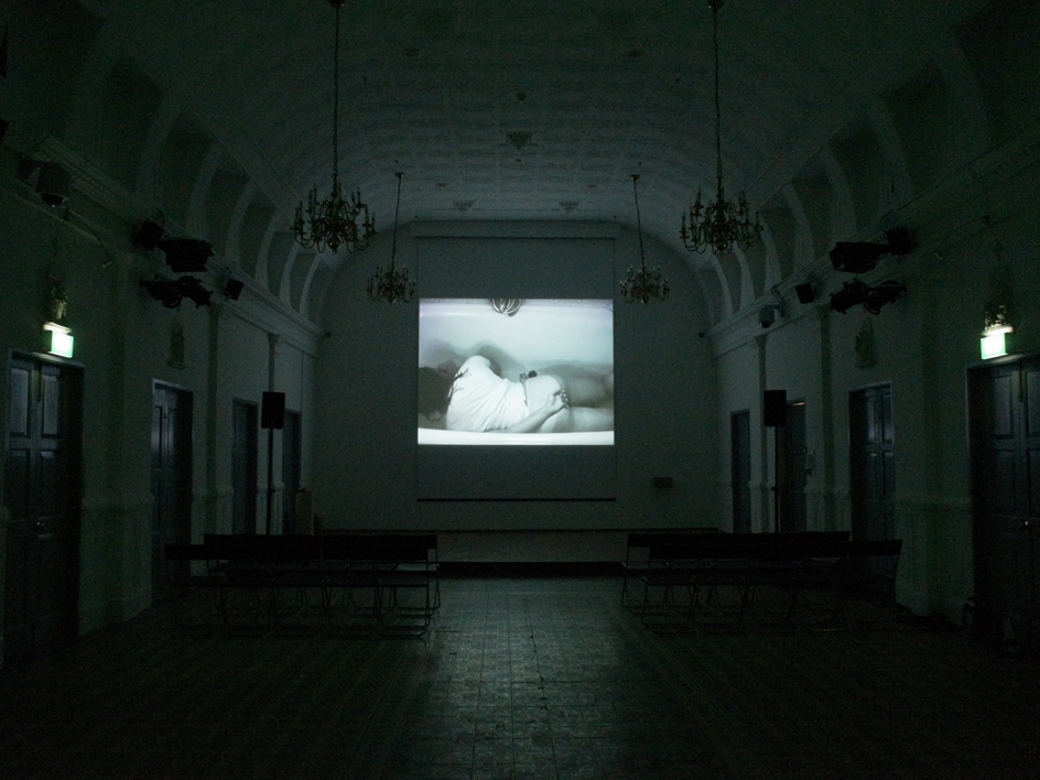 ENG// In Girum Imus Nocte (1998-2008) takes its name from the palindrome “In girum imus nocte et consumimur igni” (We turned in a circle at night and are consumed by fire). In this video-performance hysteria is exorcised through repetitive rotations within the confines of a bathtub. A single female performer driven by pre-Oedipal nostalgia attempts to experience the dissolution of the ego; through these tireless contortions of her body, she reaches a trance and attains a kind of mystical regression. Not merely documentation of a live performance, this video was created specifically for the video medium with no live audience during the performance itself and finally edited ten years later.